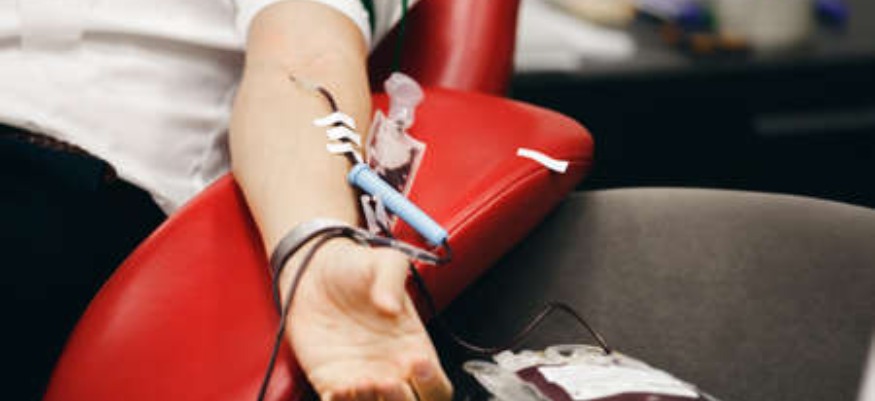 Photo : Un donneur pendant qu'on lui prélève du sang