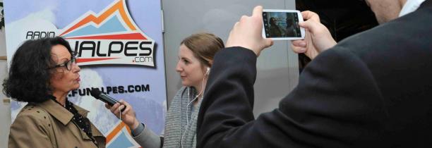 Photo :  Aline Fabresse, Maire Adjointe Chargée de l'économie à la Ville de Seynod au micro de Sunalpes . Thierry Clergue/Lauriane Senty